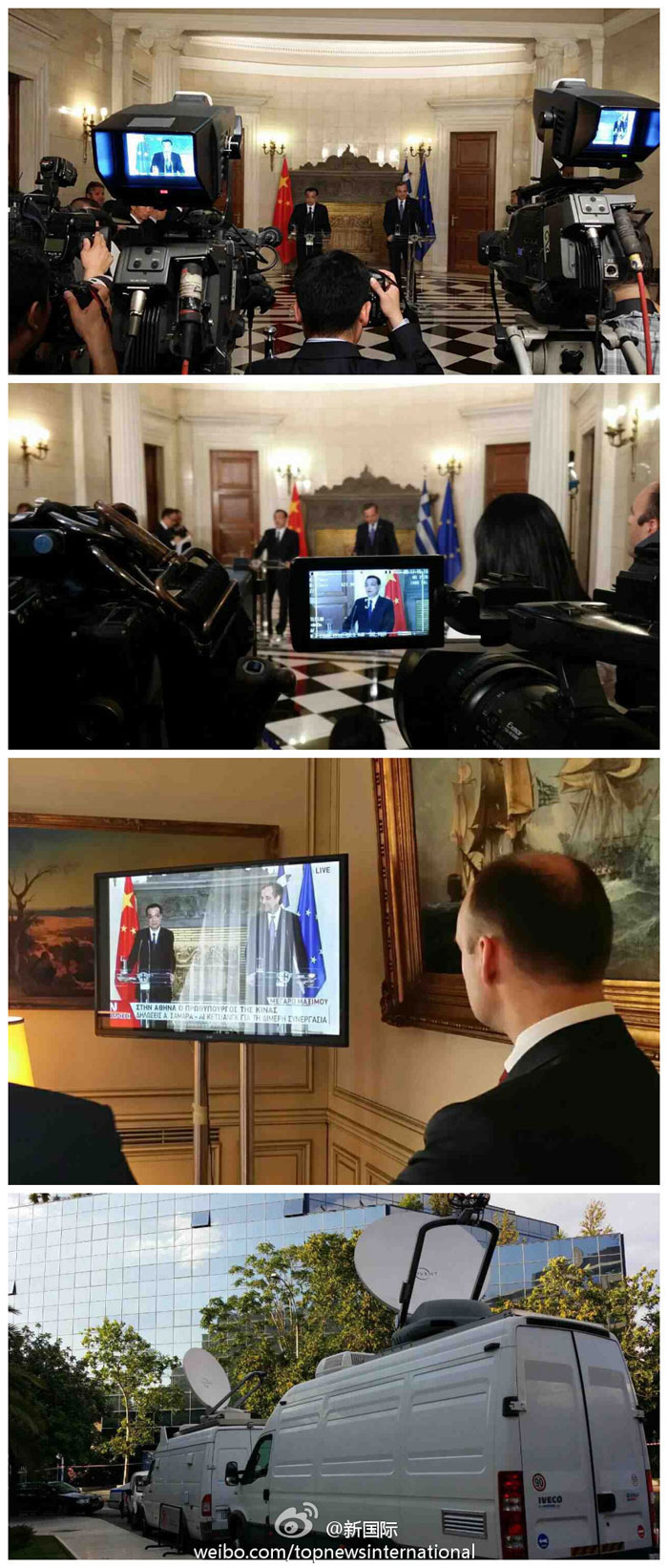 ??? 新華網(wǎng)北京6月20日電 據(jù)新華社“新國際”微博報(bào)道,19日,李克強(qiáng)總理抵達(dá)希臘開始正式訪問。希臘媒體極為關(guān)注中國總理的到訪,從機(jī)場(chǎng)的歡迎儀式到總理府會(huì)談,再到兩國總理共見記者,希臘媒體始終全程追隨。希臘國家電視臺(tái)等媒體還派出衛(wèi)星轉(zhuǎn)播車對(duì)所有活動(dòng)進(jìn)行全程直播。