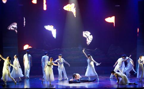 ????此次演出特邀中方以詩(shī)經(jīng)經(jīng)典《關(guān)雎》《摽有梅》開場(chǎng),演員錦衣華服,緩緩起聲,琴音低沉哀鳴高亢交錯(cuò),歌聲余音繞梁之際,韓國(guó)音樂劇《蝴蝶博士》華麗登場(chǎng)。伴隨著樂隊(duì)的現(xiàn)場(chǎng)演奏,音樂劇主角石宙明以大段韓語(yǔ)獨(dú)白震撼全場(chǎng),兩側(cè)屏幕同步顯示中文翻譯。為照顧現(xiàn)場(chǎng)觀眾,韓方演員遇到簡(jiǎn)單詞匯則以普通話來(lái)詮釋劇情,引發(fā)現(xiàn)場(chǎng)觀眾共鳴。兩個(gè)節(jié)目在動(dòng)與靜,內(nèi)斂與奔放中,碰撞出藝術(shù)火花。中韓兩國(guó)藝術(shù)家跨越語(yǔ)言障礙,用不同的藝術(shù)形式表達(dá)了共同的愿望:思考生活,憧憬未來(lái)。