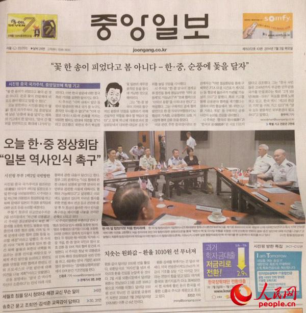 ??? 韓國《中央日?qǐng)?bào)》在頭版頭條位置刊發(fā)習(xí)近平主席署名文章《風(fēng)好正揚(yáng)帆》 金慧廷 攝