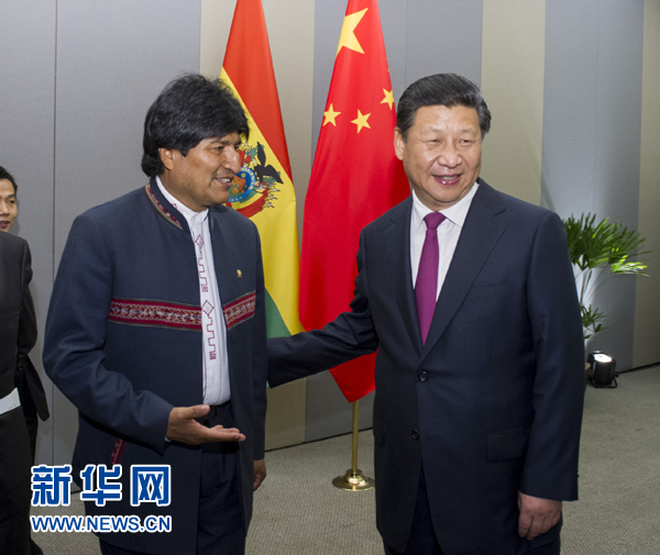 ??? 7月16日,國(guó)家主席習(xí)近平在巴西利亞會(huì)見(jiàn)玻利維亞總統(tǒng)莫拉萊斯。 新華社記者王曄攝