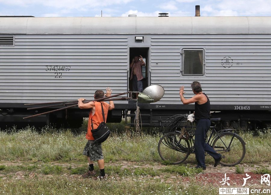 當(dāng)?shù)貢r間2014年7月20日,烏克蘭頓涅茨克Torez,馬航墜機(jī)遇難乘客遺體被裝上列車?yán)洳剀噹麑⒈贿\走。載有部分遺體的火車從距空難現(xiàn)場不遠(yuǎn)的烏克蘭托列茲市出發(fā),前往頓涅茨克市。火車離站前,身處空難現(xiàn)場的歐洲安全與合作組織(歐安組織)代表檢查了運載遺體的5節(jié)冷藏車廂。