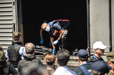 21日,烏克蘭東部小城托列茲,當天的最高氣溫約30℃。這里距離MH17被擊落地點約15公里。當天,首批31名國際組織專家已到達烏克蘭東部,開始遺體的身份鑒定等工作。專家們來自荷蘭、美國、德國、英國、澳大利亞5國。為確定遺體身份,調查組主要有法醫(yī)學等鑒定專家組成。