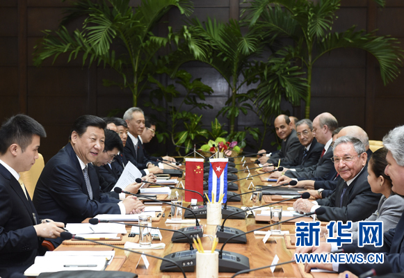 ????新華網(wǎng)哈瓦那7月22日電(記者潘國(guó)俊 趙勇陳贄)國(guó)家主席習(xí)近平22日在哈瓦那同古巴國(guó)務(wù)委員會(huì)主席兼部長(zhǎng)會(huì)議主席勞爾·卡斯特羅舉行會(huì)談。在親切、友好、誠(chéng)摯的氣氛中,兩國(guó)元首共同回顧中古關(guān)系發(fā)展,規(guī)劃兩國(guó)關(guān)系未來(lái),達(dá)成重要共識(shí),同心攜手開(kāi)創(chuàng)兩國(guó)互利友好合作新局面。