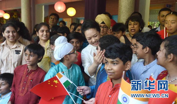 ????參觀結(jié)束時(shí),彭麗媛向?qū)W校贈(zèng)送了中文圖書、教學(xué)光碟和文具,同師生親切合影,擁抱、親吻孩子們。彭麗媛說,我會(huì)記住孩子們的笑容。歡迎大家多到中國走走看看,增進(jìn)彼此了解,把中印友好永遠(yuǎn)傳承下去。