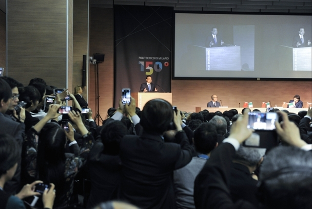 克強(qiáng)總理的到來受到了米蘭理工大學(xué)師生的熱烈歡迎,大家揮舞著手中的兩國國旗,歡呼著迎接克強(qiáng)總理的到來,不少學(xué)生紛紛拿出手機(jī)拍照。除了米蘭理工大學(xué)的師生,參加今天活動(dòng)的還有不少中意兩國創(chuàng)新行業(yè)的企業(yè)家。