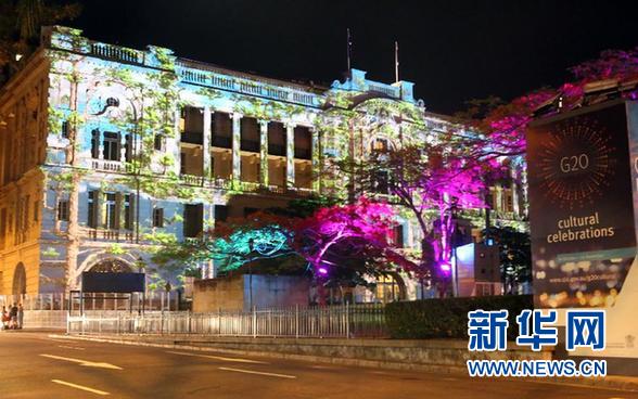 ????這是11月15日在澳大利亞布里斯班拍攝的夜景。當(dāng)日,二十國集團(tuán)領(lǐng)導(dǎo)人第九次峰會在澳大利亞布里斯班舉行。入夜,布里斯班街頭部分建筑披上了彩色的“外衣”。 新華社記者 趙丹惠 攝