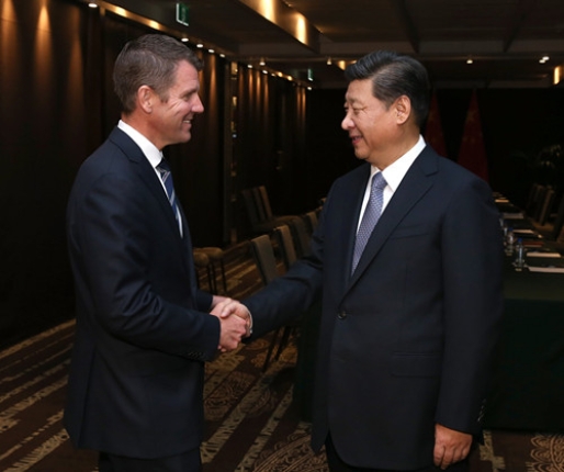 圖為習(xí)近平主席在悉尼會見澳大利亞新南威爾士州州長貝爾德。