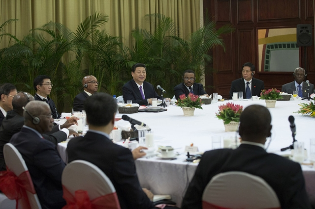 ????(2013年3月28日,國家主席習(xí)近平在南非德班同非洲國家領(lǐng)導(dǎo)人舉行早餐會。新華社記者蘭紅光攝)
