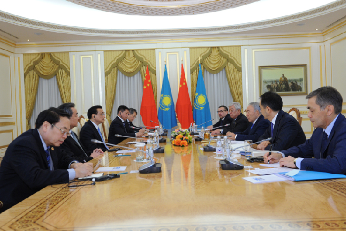 李克強會見哈薩克斯坦總統(tǒng)納扎爾巴耶夫。新華社 饒愛民 攝