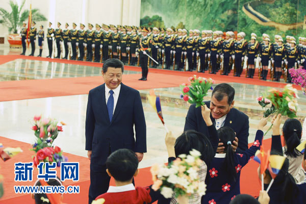 ????新華網(wǎng)北京1月7日電(記者劉華)國家主席習近平7日在人民大會堂同厄瓜多爾總統(tǒng)科雷亞舉行會談。兩國元首決定建立中厄戰(zhàn)略伙伴關系。