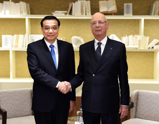 不顧旅途勞頓,克強(qiáng)總理剛下榻酒店就會見了施瓦布,并應(yīng)邀出席小范圍晚宴。