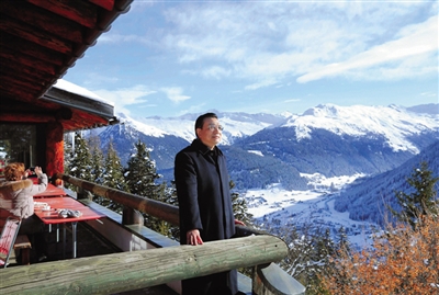 世經(jīng)論壇工商對話會及論壇年會開幕前1小時,李克強(qiáng)來到下榻飯店邊海拔1800米的沙茨阿爾卑山頂,放眼達(dá)沃斯。