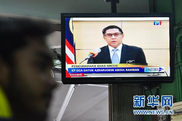 ????1月29日,在馬來西亞吉隆坡,電視直播馬來西亞民航局局長愛茲哈爾丁發(fā)表聲明。馬來西亞民航局當(dāng)日宣布,馬來西亞航空公司MH370航班失事,推定機上全部239名乘客及機組成員已遇難。 新華社發(fā)(張紋綜攝)