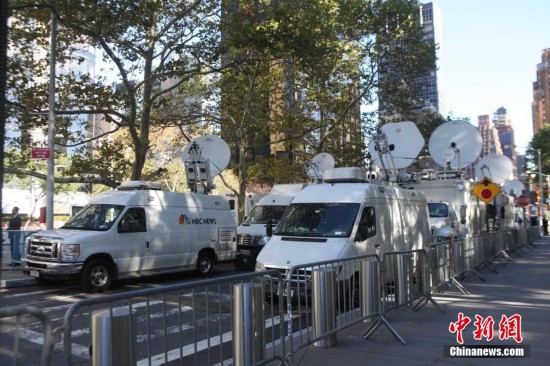 當(dāng)?shù)貢r間9月24日,電視媒體轉(zhuǎn)播車在紐約聯(lián)合國總部外云集。聯(lián)合國發(fā)展峰會將于25日至27日舉行,150余位世界各國領(lǐng)導(dǎo)人將出席本次峰會。 中新社記者 鄧敏 攝