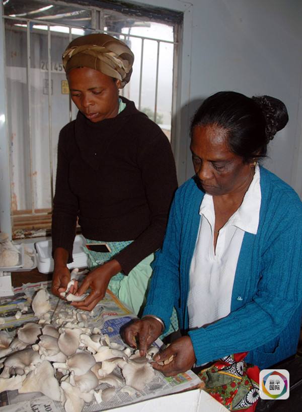 ????2007年10月4日,在南非東南部祖魯王國(guó)山區(qū)夸丁迪村,當(dāng)?shù)貗D女包裝加工自己種植的蘑菇。2005年1月,福建農(nóng)林大學(xué)的中國(guó)菌草蘑菇專(zhuān)家林占教授把菌草蘑菇栽培技術(shù)引入祖魯王國(guó),經(jīng)過(guò)教授和試種,蘑菇已經(jīng)成為當(dāng)?shù)剞r(nóng)民脫貧致富的希望。新華社記者陳銘攝