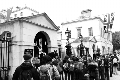 10月16日,在英國倫敦皇家騎兵衛(wèi)隊檢閱場,正門外已掛出大幅中英兩國國旗,往來游人與身穿傳統(tǒng)制服的衛(wèi)隊哨兵合影留念。20日,為前來英國進行國事訪問的習(xí)近平主席舉行的歡迎儀式將在這里進行。現(xiàn)場將鳴放21響禮炮,女王伊麗莎白二世與其丈夫愛丁堡公爵菲利普親王將陪同習(xí)近平主席檢閱英國皇家儀仗隊。隨后,女王夫婦將陪同習(xí)近平主席夫婦從這里乘坐皇家馬車前往白金漢宮,并共進午宴。 本報駐倫敦記者 戴軍攝