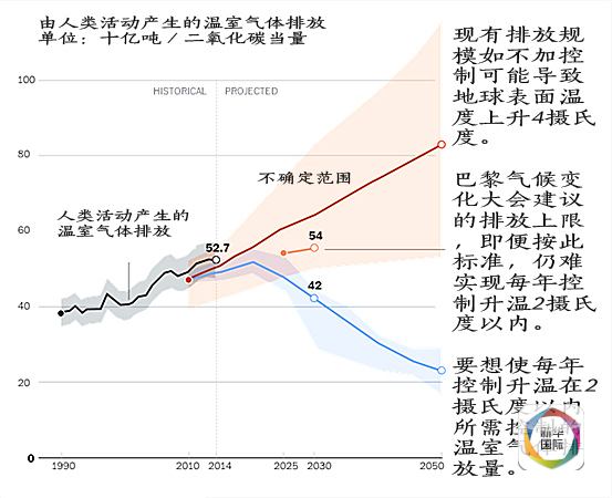 根據(jù)聯(lián)合國環(huán)境規(guī)劃署和世界資源研究所等機構(gòu)的數(shù)據(jù),全球由人類活動引發(fā)的溫室氣體排放量呈上升趨勢,2012年接近500億噸二氧化碳當(dāng)量,2014年達到527億噸二氧化碳當(dāng)量。