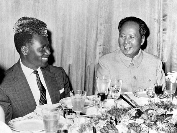 圖為1960年9月12日晚,中共中央主席毛澤東設(shè)宴招待幾內(nèi)亞共和國總統(tǒng)塞古·杜爾。