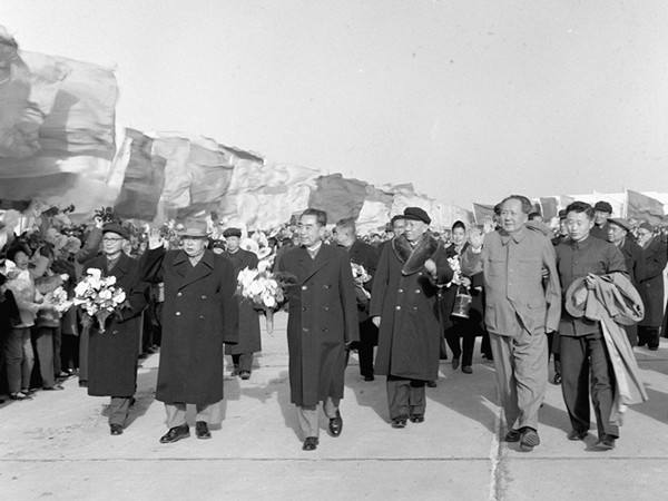 1964年3月15日,國務(wù)院總理周恩來結(jié)束了對非洲10個國家、阿爾巴尼亞和亞洲3個國家的訪問之后,乘專機(jī)回京。黨和國家領(lǐng)導(dǎo)人毛澤東、劉少奇、鄧小平等以及首都各界群眾五千多人前往機(jī)場熱烈歡迎。(新華社記者劉慶瑞攝)