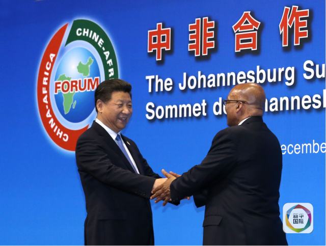 12月4日,國家主席習近平出席中非合作論壇約翰內斯堡峰會開幕式并發(fā)表致辭。這是南非總統(tǒng)祖馬迎接習近平。(新華社記者龐興雷攝)