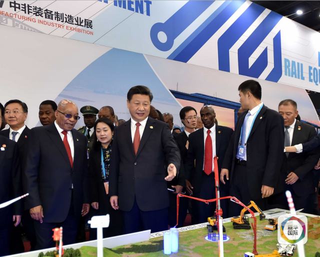 12月4日,國家主席習近平在約翰內斯堡同南非總統(tǒng)祖馬,非盟輪值主席、津巴布韋總統(tǒng)穆加貝共同出席中非裝備制造業(yè)展開幕式并為展覽剪彩。(新華社記者李濤攝)