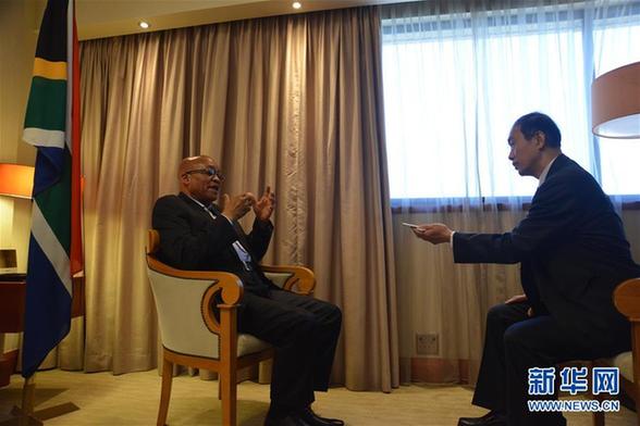 12月6日,南非總統(tǒng)祖馬在南非約翰內(nèi)斯堡接受新華社記者專訪。 “我們非常感謝中國理解非洲的困難和面臨的挑戰(zhàn),感謝中國領(lǐng)導(dǎo)人和中國人民與我們一起并肩面對。習(xí)近平主席在峰會上的講話告訴全世界:中國是我們真正的朋友和伙伴,”南非總統(tǒng)祖馬6日在接受新華社專訪時說。新華社記者趙熙攝