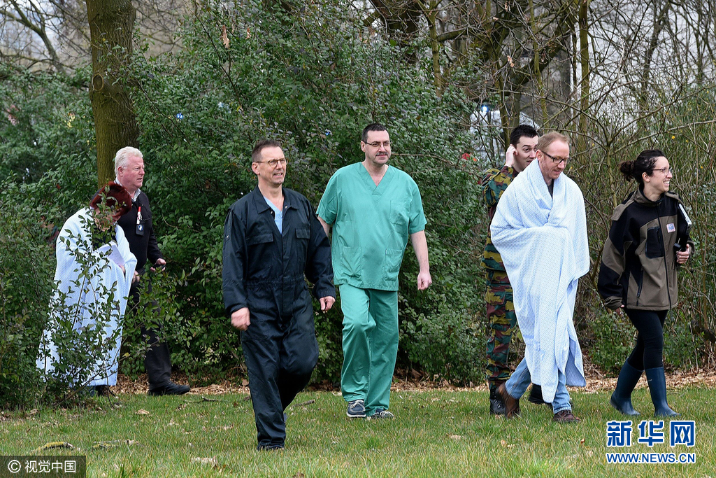 ??? 當(dāng)?shù)貢r(shí)間2016年3月24日,比利時(shí)布魯塞爾, Koningin Astrid-Reine Astrid 軍事醫(yī)院發(fā)生天然氣泄漏,民眾緊急疏散,一部分在日前布魯塞爾恐襲中受傷的民眾在此接受治療。圖片來源:視覺中國(guó)