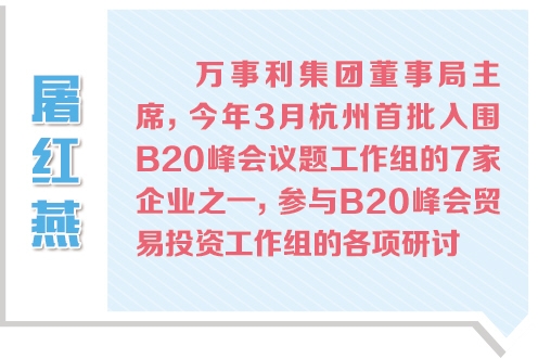 “G20杭州峰會(huì)的舉辦,對(duì)杭州來說是很好的機(jī)會(huì),企業(yè)將受益匪淺,更是我們公司全球化的新起點(diǎn)。”參加B20峰會(huì)貿(mào)易投資組會(huì)議的??低暥麻L(zhǎng)陳宗年說。