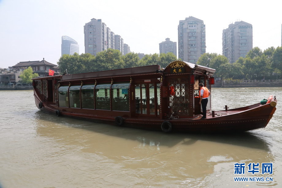 ????當(dāng)船開動,只見船兩邊涌起一波波的水浪;走出船艙,在船頭迎風(fēng)而立,兩岸的景色一覽無遺,微風(fēng)拂面,更有乘風(fēng)破浪之意。新華網(wǎng) 翁 璟 攝