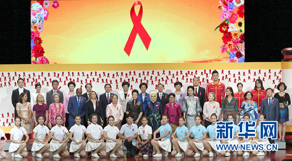最后,彭麗媛同來賓們在中國卷軸造型的簽名板上貼上紅絲帶,共同表達對防治和抗擊艾滋病的堅定支持和共同期待。