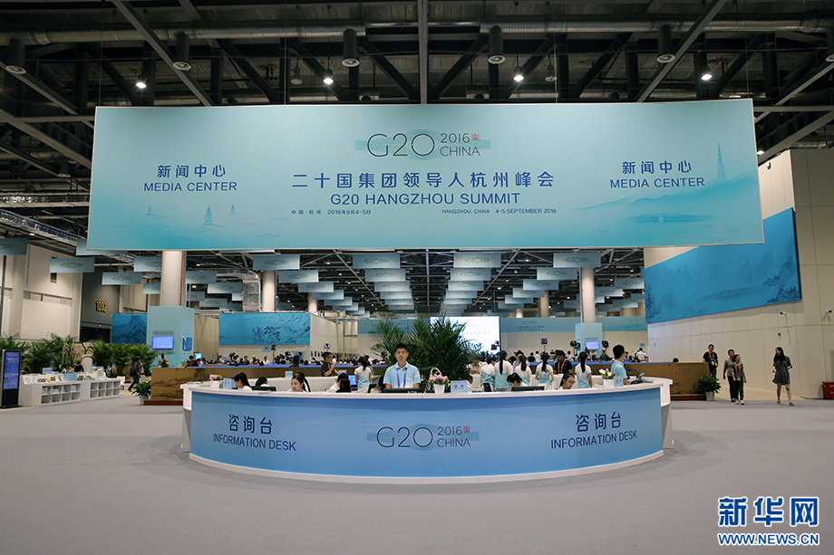 ????9月4日至5日,二十國(guó)集團(tuán)領(lǐng)導(dǎo)人杭州峰會(huì)在浙江杭州舉行。全球媒體人匯聚一堂,關(guān)注報(bào)道峰會(huì)盛況。在G20杭州峰會(huì)新聞中心,200多位志愿者身著青白色運(yùn)動(dòng)服,男生外套上藍(lán)下白,象征層巒疊嶂;女生外套上白下藍(lán),意味水波蕩漾。兩者輝映,體現(xiàn)了杭州這座古城湖光山色的獨(dú)特風(fēng)韻。