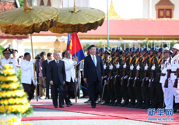 抵達金邊之前,習近平主席在當?shù)刂髁鲌蠹垺都砥艺狻钒l(fā)表署名文章,用“肝膽相照的好朋友”“情同手足的好鄰居”形容中柬友誼。