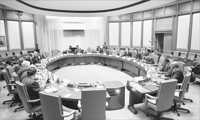 2016年4月14日,新開(kāi)發(fā)銀行特別理事會(huì)會(huì)議在美國(guó)華盛頓舉行。 新華社發(fā)