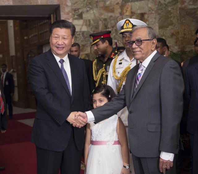 圖為10月14日,國(guó)家主席習(xí)近平抵達(dá)達(dá)卡,開(kāi)始對(duì)孟加拉人民共和國(guó)進(jìn)行國(guó)事訪問(wèn)。這是習(xí)近平接受孟加拉國(guó)兒童獻(xiàn)花。(新華社記者蘭紅光攝)