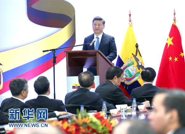 習(xí)近平在致辭中指出,中厄友誼源遠(yuǎn)流長。近年來,雙邊友好關(guān)系實現(xiàn)了全面發(fā)展,并剛剛升級為全面戰(zhàn)略伙伴關(guān)系。兩國能夠加強合作,得益于雙方對發(fā)展前景的堅定信心,對互為發(fā)展機遇的清晰認(rèn)知。當(dāng)前,中國和厄瓜多爾深化互利共贏合作恰逢其時。中方愿同厄方深化合作、攜手發(fā)展,共同譜寫兩國全面戰(zhàn)略伙伴關(guān)系新篇章。