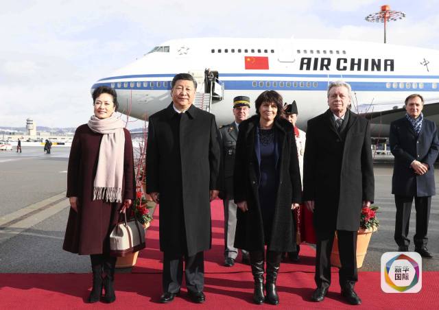 瑞方對習主席訪問給予高規(guī)格禮遇:瑞士聯(lián)邦主席洛伊特哈德全程陪同,習主席抵達瑞士當天,瑞方以三場儀式表達盛情: