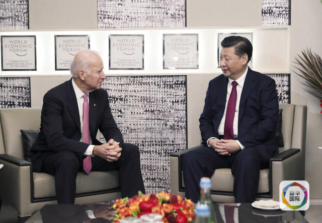 1月17日,國家主席習(xí)近平在瑞士達(dá)沃斯會見美國副總統(tǒng)拜登。(新華社記者 蘭紅光 攝)