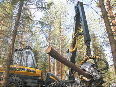 從芬蘭首都赫爾辛基驅(qū)車(chē)往北一個(gè)多小時(shí),我們的四輪驅(qū)動(dòng)汽車(chē)駛上一條小路。路上積雪越來(lái)越多,兩旁的森林也越來(lái)越密。循著轟鳴聲,我們看到一臺(tái)伐木機(jī)正在作業(yè):一只碩大的機(jī)械手攥住云杉的底部,量直徑、切樹(shù)樁、去雜枝、測(cè)長(zhǎng)度、斷木頭,幾秒鐘的工夫,一氣呵成。