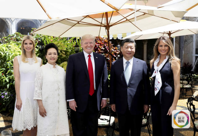 當?shù)貢r間4月7日,國家主席習近平在美國佛羅里達州海湖莊園同美國總統(tǒng)特朗普舉行中美元首第二場正式會晤。這是習近平和夫人彭麗媛同特朗普和夫人梅拉尼婭、女兒伊萬卡在莊園內(nèi)合影。(新華社記者蘭紅光攝)