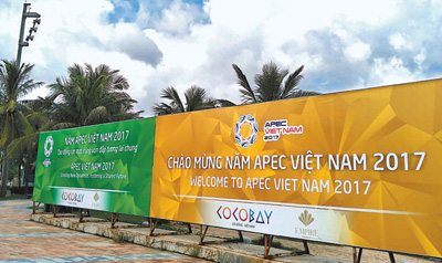 2017年亞太經(jīng)合組織(APEC)領(lǐng)導(dǎo)人會(huì)議周將于11月6日在越南峴港拉開帷幕,其間將舉行APEC第二十五次領(lǐng)導(dǎo)人非正式會(huì)議。圖為峴港街頭的宣傳牌。記者 劉剛攝