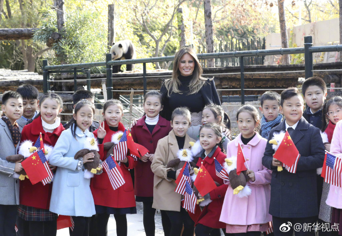 特朗普夫人梅拉尼婭參觀北京動(dòng)物園熊貓館