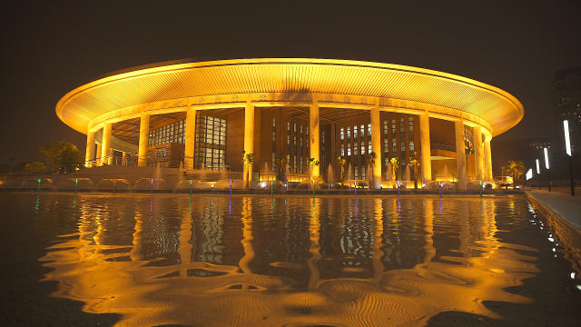河內(nèi)西南部開發(fā)區(qū)黎光道188號(hào),中方援建的越中友誼宮坐落于此。這座建筑呈現(xiàn)蓮花造型,外部四角布有水池,營(yíng)造出一種出水芙蓉的意境。白色的立柱環(huán)抱著柚木色的主墻,典雅精致。外圓而內(nèi)方的設(shè)計(jì),象征和諧、團(tuán)結(jié)與圓滿,傳遞中越友誼長(zhǎng)存、世代友好的深意。