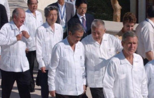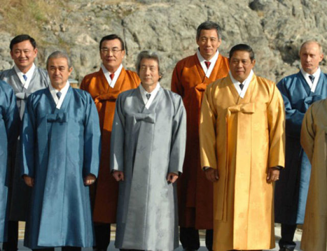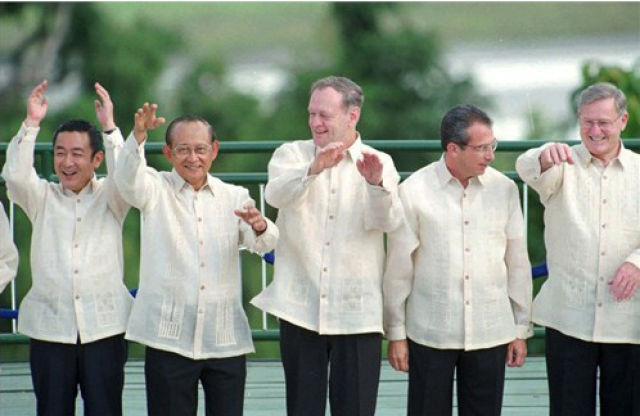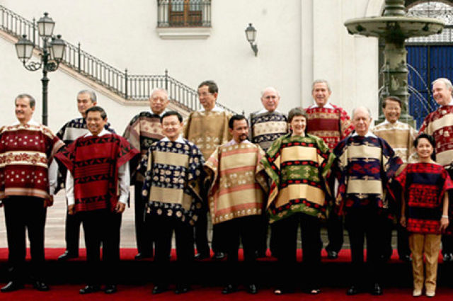 1993年,首屆APEC領(lǐng)導(dǎo)人非正式會(huì)議在美國(guó)西雅圖召開。各經(jīng)濟(jì)體領(lǐng)導(dǎo)人不帶助手和隨身翻譯,不穿正裝。從那以后,在一年一度的APEC領(lǐng)導(dǎo)人非正式會(huì)議期間,東道主通常會(huì)為與會(huì)領(lǐng)導(dǎo)人提供特別制作的當(dāng)?shù)貍鹘y(tǒng)服裝,在宣介東道主傳統(tǒng)文化的同時(shí),也體現(xiàn)“亞太大家庭”的理念。