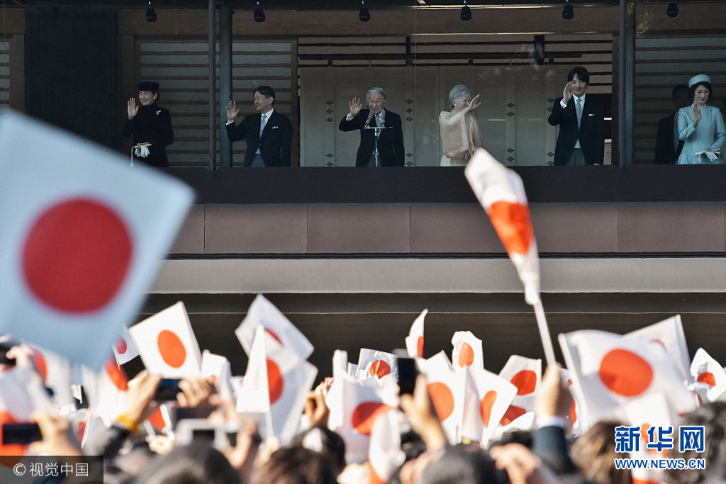 當(dāng)?shù)貢r(shí)間2017年12月23日,日本東京,日本明仁天皇慶祝84歲生日,在皇宮的陽臺上向祝福者揮手致意。(圖片來源:視覺中國)
