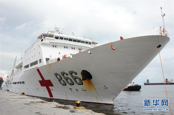 9月19日,中國海軍和平方舟醫(yī)院船停靠塞拉利昂弗里敦港。執(zhí)行“和諧使命-2017”任務(wù)的中國海軍和平方舟醫(yī)院船19日在任務(wù)指揮員管柏林、政委金毅率領(lǐng)下抵達塞拉利昂弗里敦港,開始為期8天的友好訪問并提供人道主義醫(yī)療服務(wù)。這是中國海軍艦艇首次訪問塞拉利昂。新華社記者石松攝