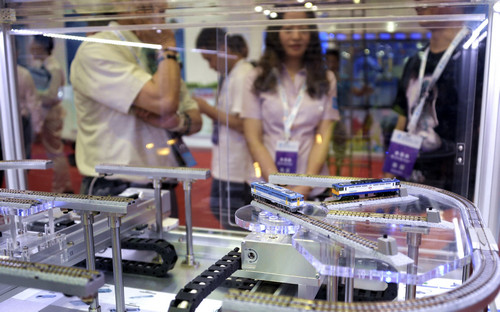 資料圖片:這是在北京舉行的2017年世界機(jī)器人大會上展出的智能交通系統(tǒng)模型(8月24日攝)。新華社記者 李欣 攝