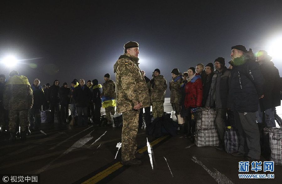 12月27日,烏克蘭哈爾科夫,獲釋戰(zhàn)俘抵達哈爾科夫。烏克蘭政府軍與東部民間武裝當(dāng)日舉行了大規(guī)模的交換戰(zhàn)俘行動。(圖片來源:視覺中國)