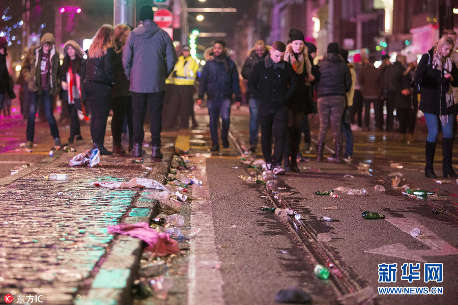 2018年1月1日,英國(guó)愛(ài)丁堡,跨年狂歡過(guò)后,遍地垃圾。(圖片來(lái)源:東方IC)