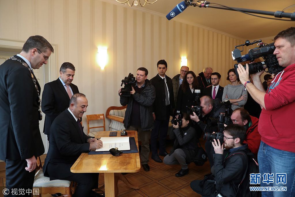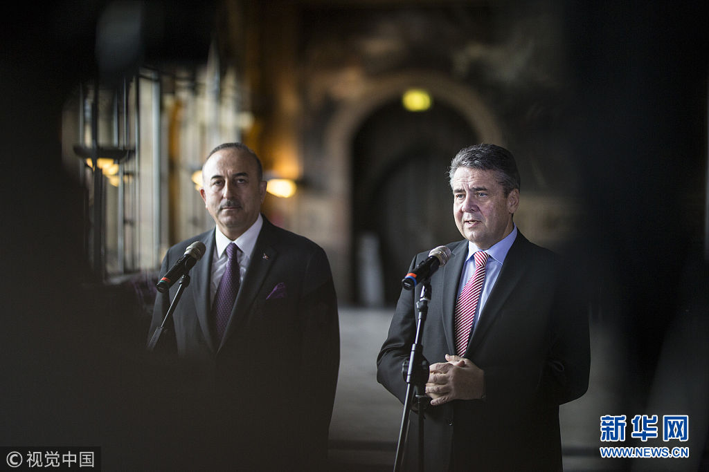 當(dāng)?shù)貢r(shí)間2018年1月6日,德國(guó)戈斯拉爾,德國(guó)外交部長(zhǎng)加布里爾與土耳其外交部長(zhǎng)梅夫呂特·恰武什奧盧發(fā)表聯(lián)合聲明。(圖片來源:視覺中國(guó))