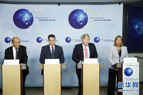 當(dāng)天在與伊朗外長扎里夫舉行會(huì)談后,莫蓋里尼、法國外長勒德里安、德國外長加布里爾和英國外交大臣約翰遜舉行發(fā)布會(huì),強(qiáng)調(diào)了歐方的這一立場。